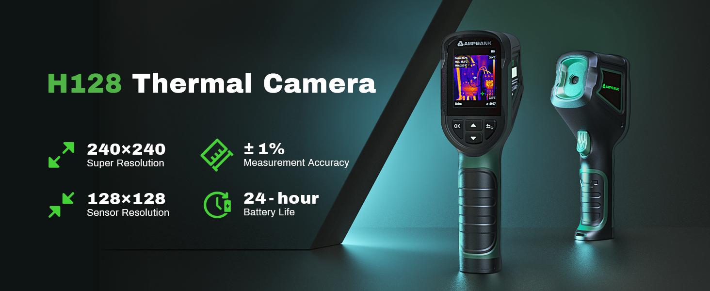 H128 Handheld Thermal Camera, 240 x 240 TISR Resolution, 24h Battery Life Thermal Imaging Camera, 25 Hz Infrared Camera with Temperature Alarm, -4℉~ 842℉ Temp Range, IP65 Protection Level